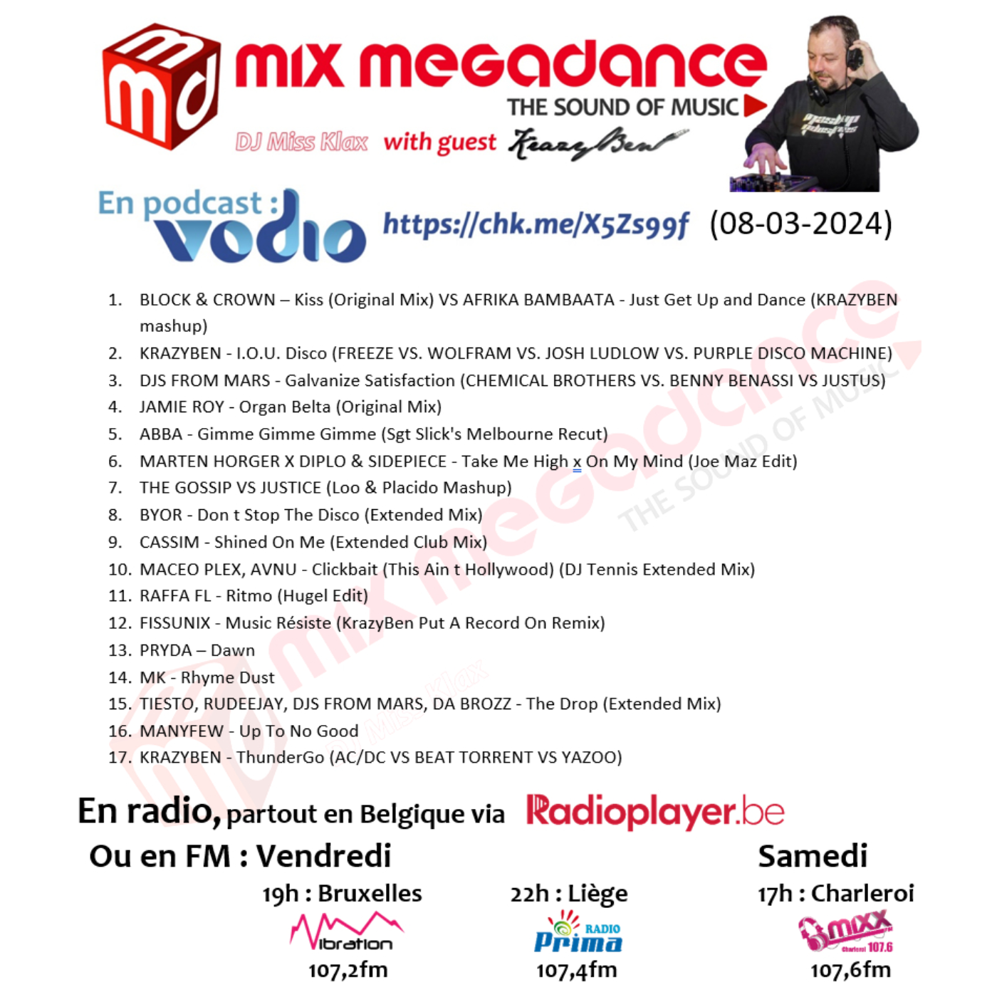 - à 17h sur Mixx fm (Charleroi) : 107,6 fm et en DAB+ Canal 11B - https://mixxradio.be/ (rediffusion le dimanche à 16h)