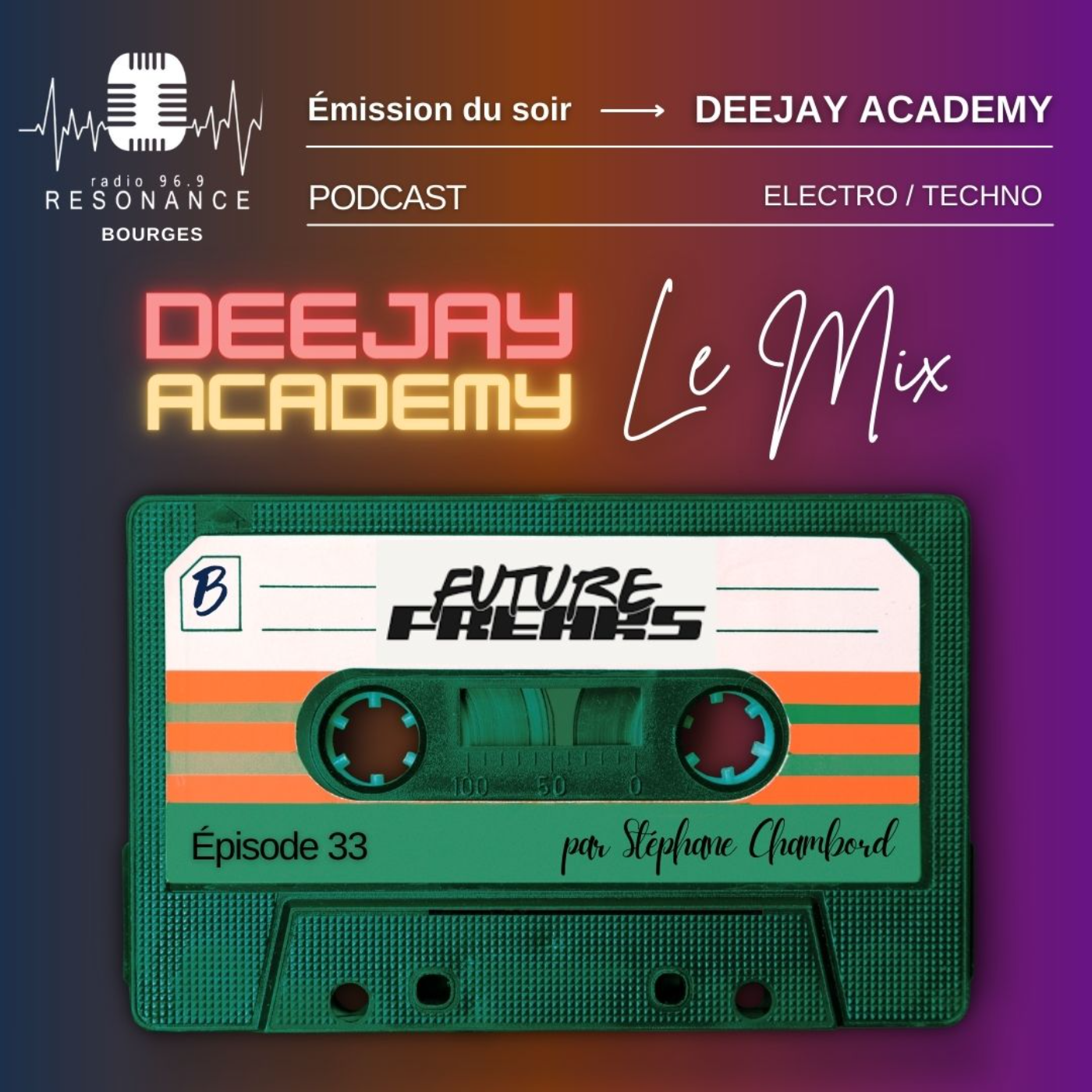 Deejay Academy, une émission mix-animée par Stéphane Chambord avec un esprit clubbing underground, produite par Résonance, la Radio de Bourges et du Cher, 100% locale, 96.9FM