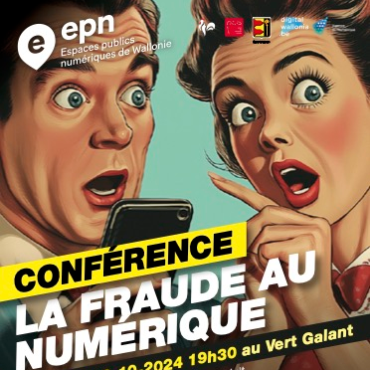 Conférence-débat "La fraude au numérique" avec la police de l'Ardenne Brabançonne représenté par l'officier Sandrine Eyskens et l'animateur de l'EPN Christophe Huget.