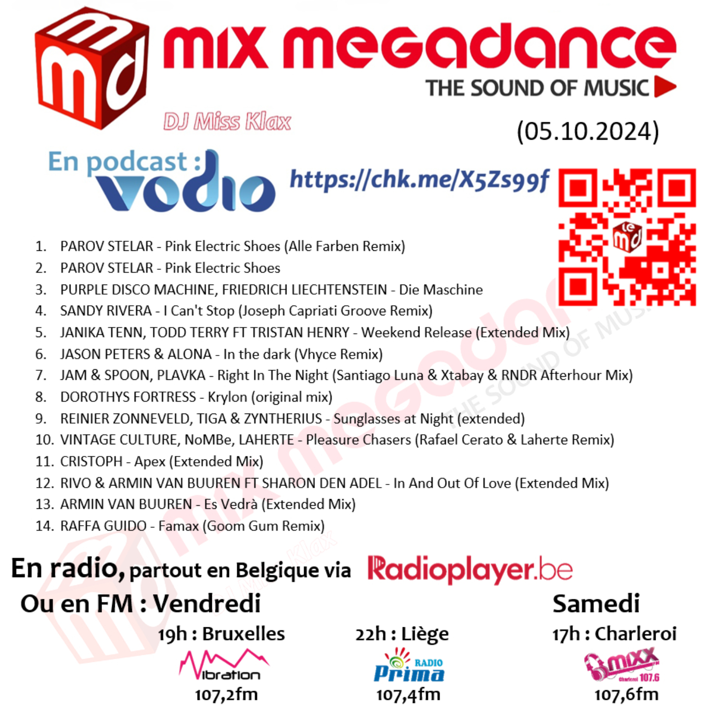 - à 17h sur Mixx fm (Charleroi) : 107,6 fm et en DAB+ Canal 11B - https://mixxradio.be/ (rediffusion le dimanche à 16h)