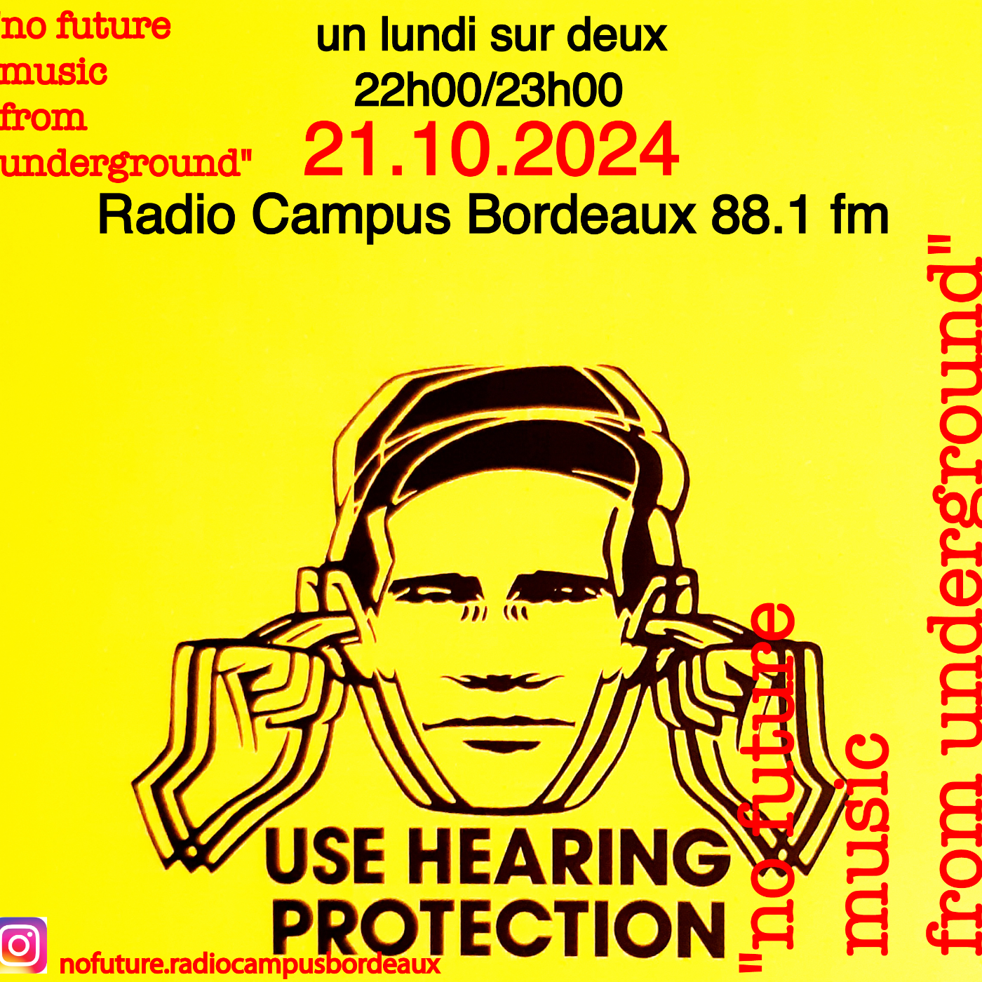 Une émission radio diffusée le lundi (une semaine sur deux) sur les antennes de Radio Campus Bordeaux de 22h à 23h. L'émission est animée par Gianfranco Catania et retrace l'évolution musicale à partir du mouvement Punk (1976), en passant par la musique underground (post-punk, new wave, goth, électronique et industrielle) jusqu'à 1985. Retrouvez ici tous les épisodes de l'émission en intégralité. Pour plus d'informations, nous vous invitons à consulter notre page instagram : @nofuture.radiocampusbordeaux
