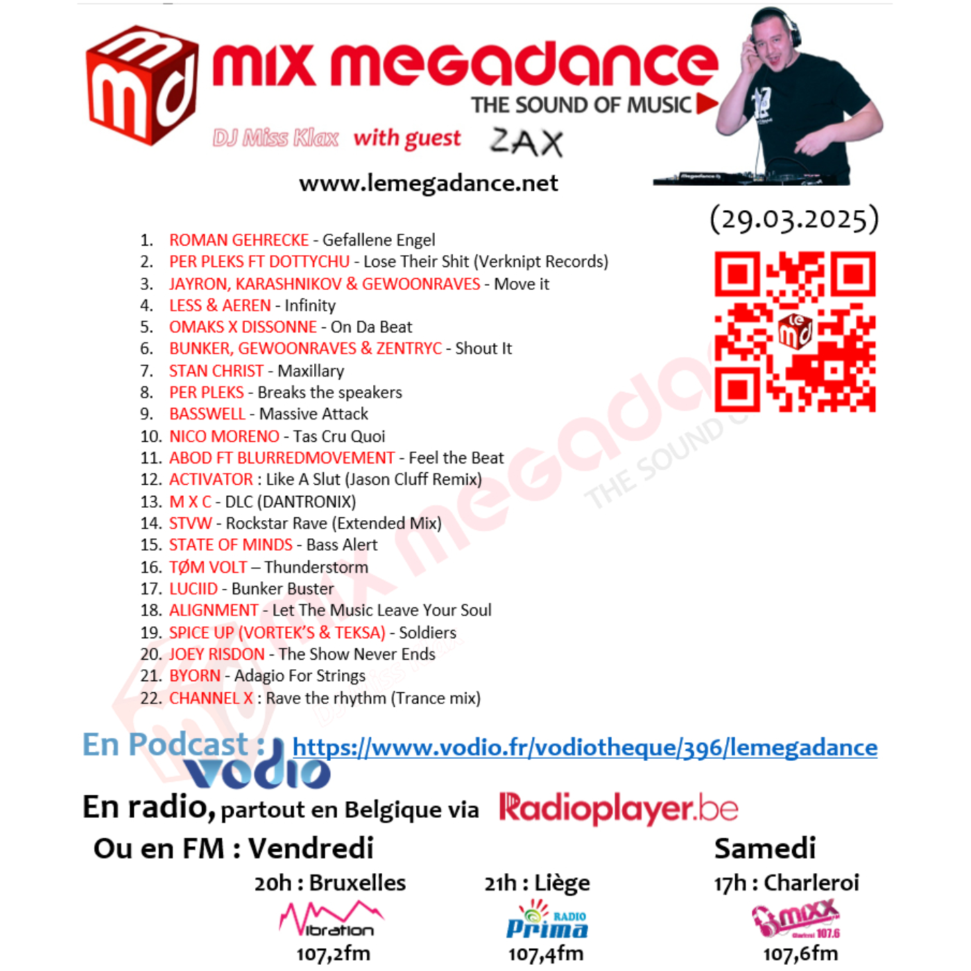 - à 21h sur Radio Prima (Liège) : 107,4 fm et DAB+ bloc 12 -