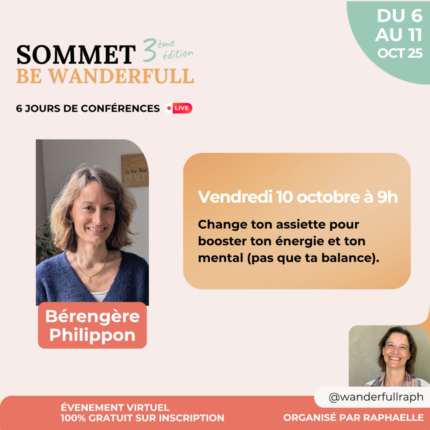 Les conférences privées du Sommet Be Wanderfull (édition 3 d'octobre 2025) directement dans vos oreilles ! Évènement virtuel organisé par Raphaelle Gasse @wanderfullraph. Partages et reproductions interdits. ©2025 Wanderfull | Tous droits réservés.