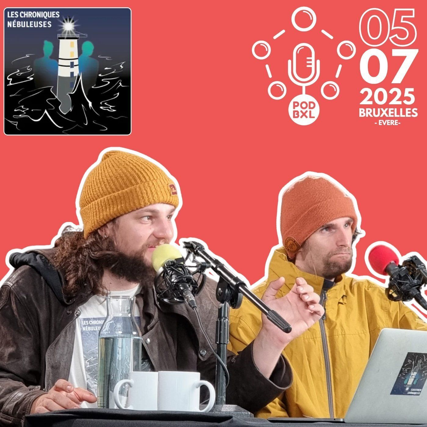 « Les Chroniques Nébuleuses », un podcast de fiction sonore immersive présenté en live au festival PodBXL 2025 à Bruxelles.