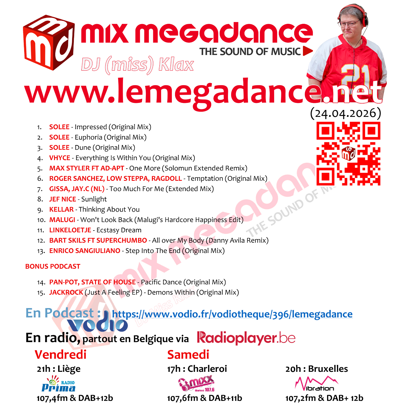 - à 21h sur Radio Prima (Liège) : 107,4 fm et DAB+ canal 12 -