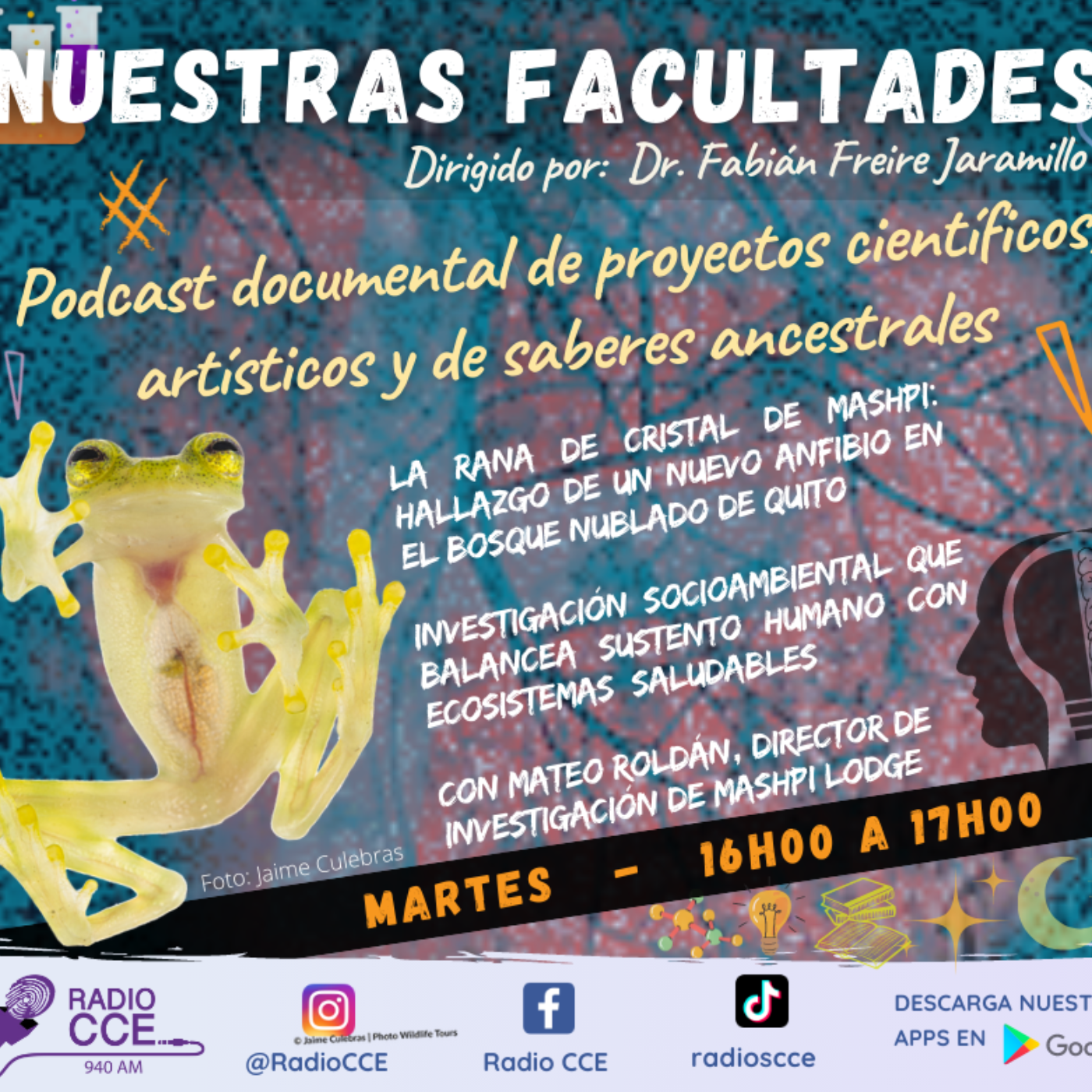 Conversamos con el ecologista Mateo Roldán, director de investigación de Mashpi Lodge, sobre el descubrimiento de la Rana de Cristal de Mashpi una nueva especie anfibia que habita en el Chocó Andino, en el bosque nublado al noroccidente de Quito. #Andes #Ecuador #nuestrasfacultades #ourfaculties #biology #ecosystem #conservation #newspecies #biologia