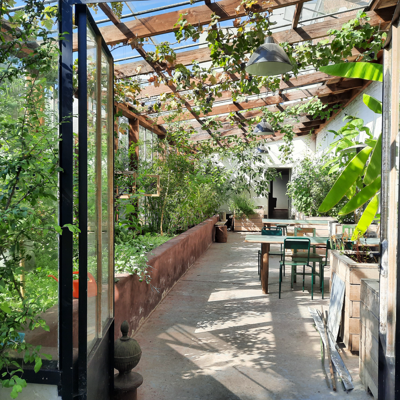 Nous sommes dans le jardin de l'espace de coworking L'Usine.