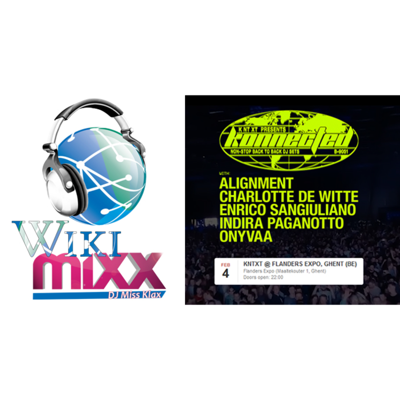 « KNTXT Konnected sera un croisement unique entre performance solo et sessions B2B (back-to-back) entre elle et ses invités qui sont : Alignment, Enrico Sangiuliano, Indira Paganotto and ONYVAA.